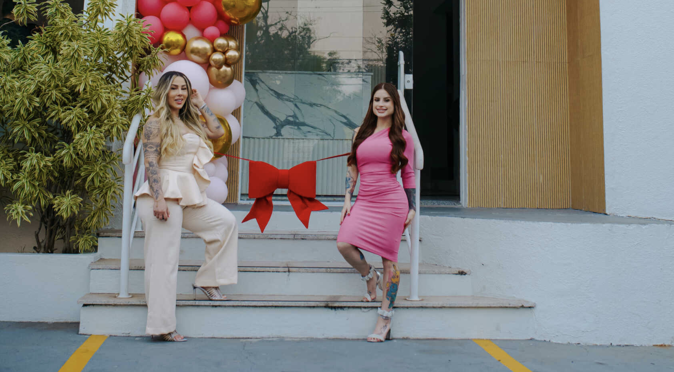 Pensado para ser um espaço aconchegante e no qual as clientes se sentissem em casa, todo o ambiente foi idealizado por Allana e Letícia, que usaram a imaginação e o bom gosto em cada um dos três andares disponíveis. Com a cor rosa em destaque, por ser a favorita de ambas, há também espaços instagramáveis e diversos serviços disponíveis, como bronzeamento artificial, depilação a laser, extensão de cílios, harmonização facial, Dia da Noiva, design de sobrancelhas e muito mais.