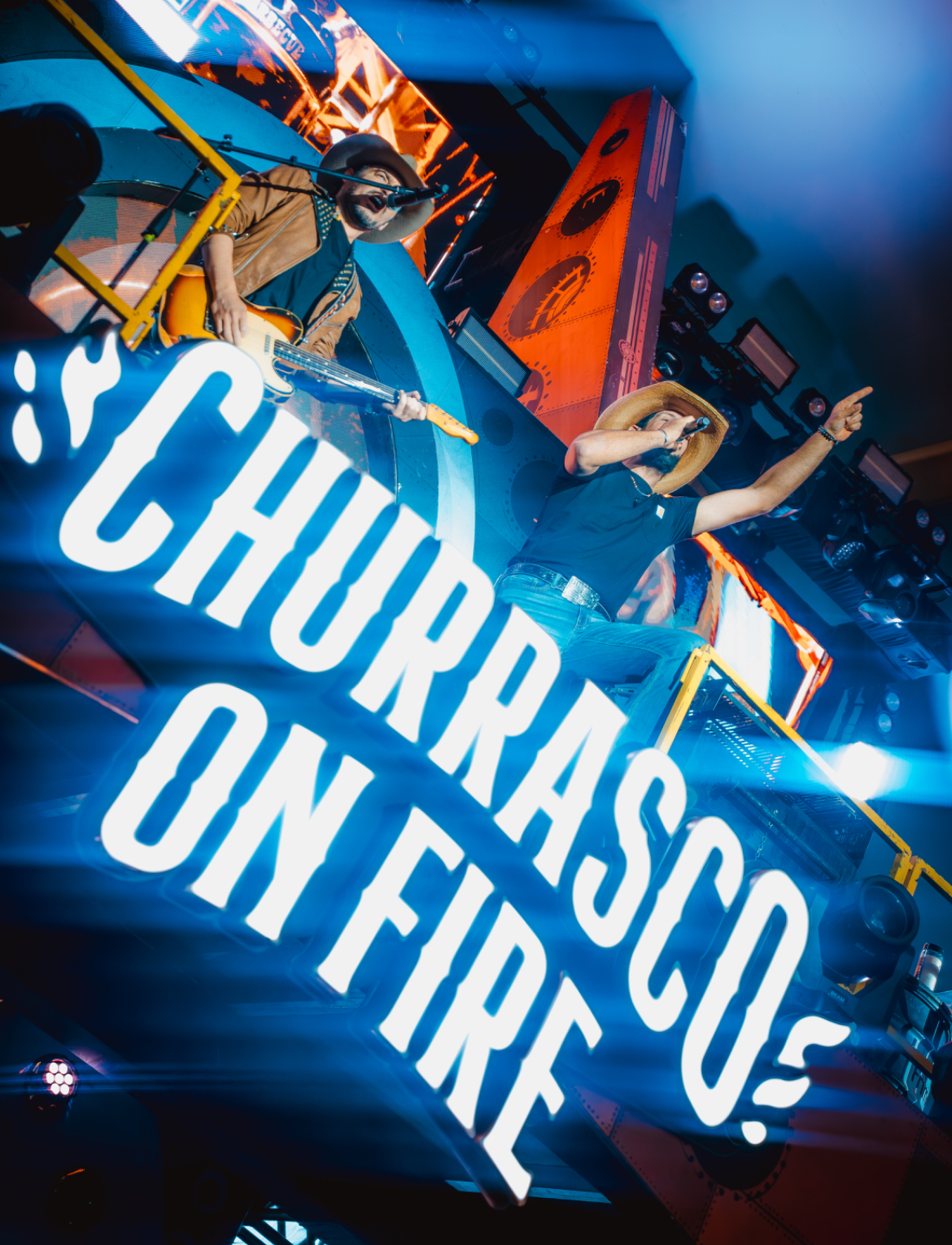 O maior palco itinerante da América Latina impressionou pelo tamanho e pelas luzes de LED, que se acenderam para receber o repertório especialmente desenhado para a temporada 2025 do Churrasco On Fire. Momentos como o preparo ao vivo do arroz carreteiro por Fernando e a interação de Sorocaba com o público no palco montado sobre uma F-150 da Ford garantiram um espetáculo único.