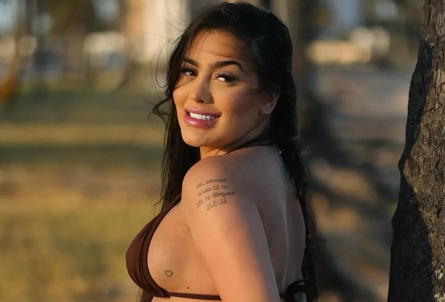 De biquíni, MC Mirella exibe o barrigão em novo ensaio fotográfico