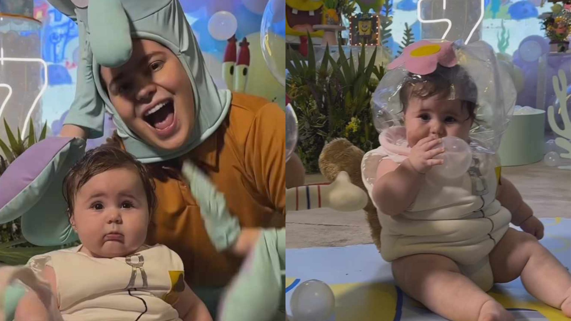 Com decoração de fundo do mar, recriando a famosa Fenda do Biquíni da série infantil, a família se vestiu como os personagens da trama para brincar com a bebê. Viih Tube surgiu como Lula Molusco, enquanto Eliezer apostou na fantasia de Bob Esponja. Já a pequena Lua estava vestida como Sandy Bochechas.