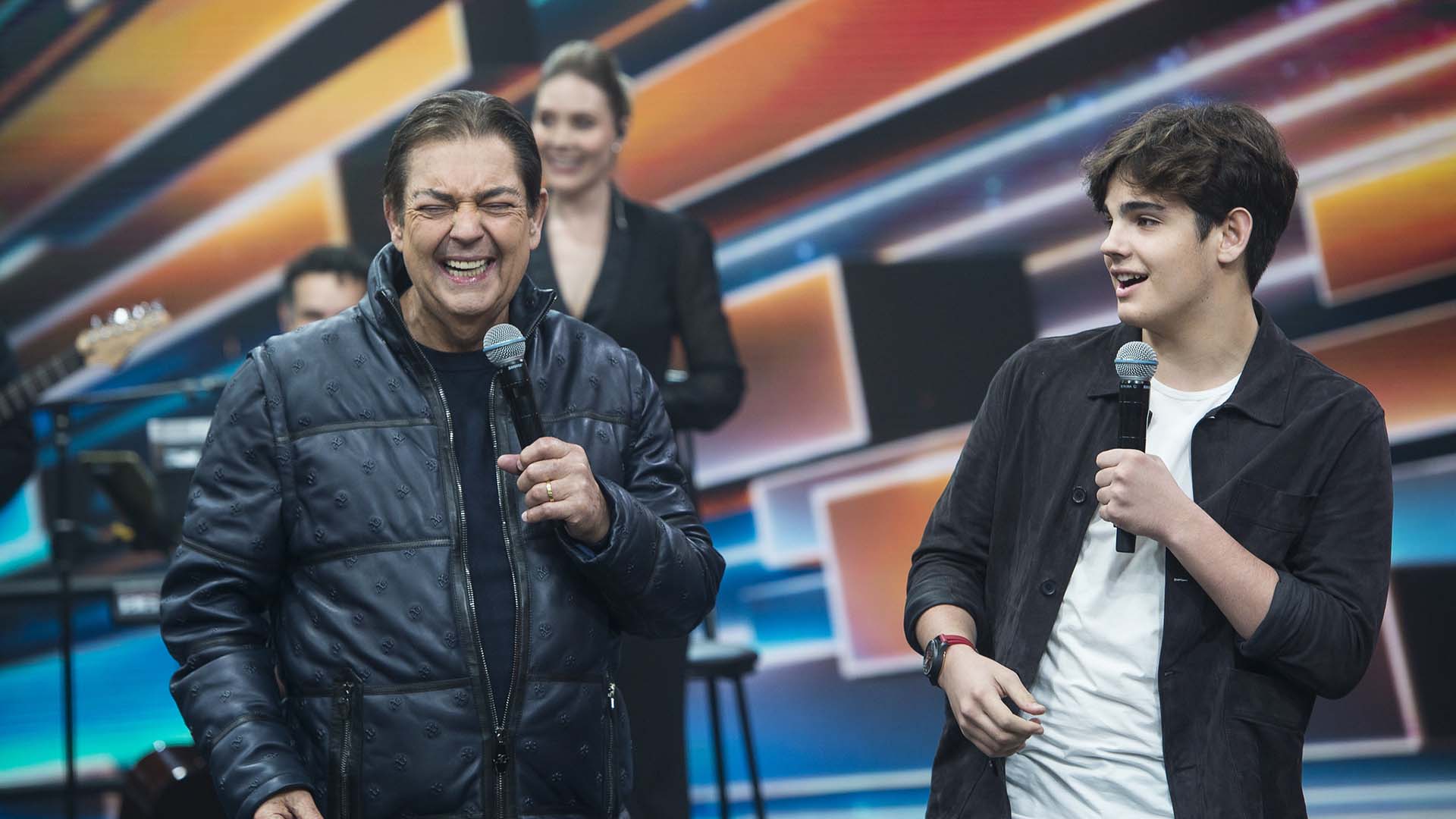 O filho caçula de Faustão, Rodrigo, surpreendeu ao aparecer no programa do pai. Discreto, o rapaz mostrou que tem desenvoltura no palco e se declarou para o pai na gravação. “É um momento muito importante para ele. É o último programa dele aqui hoje. Além de pai, é o meu ídolo”, disse ele. Então, Faustão até brincou que o filho caçula tinha criado voz depois de mostrar que era tímido.