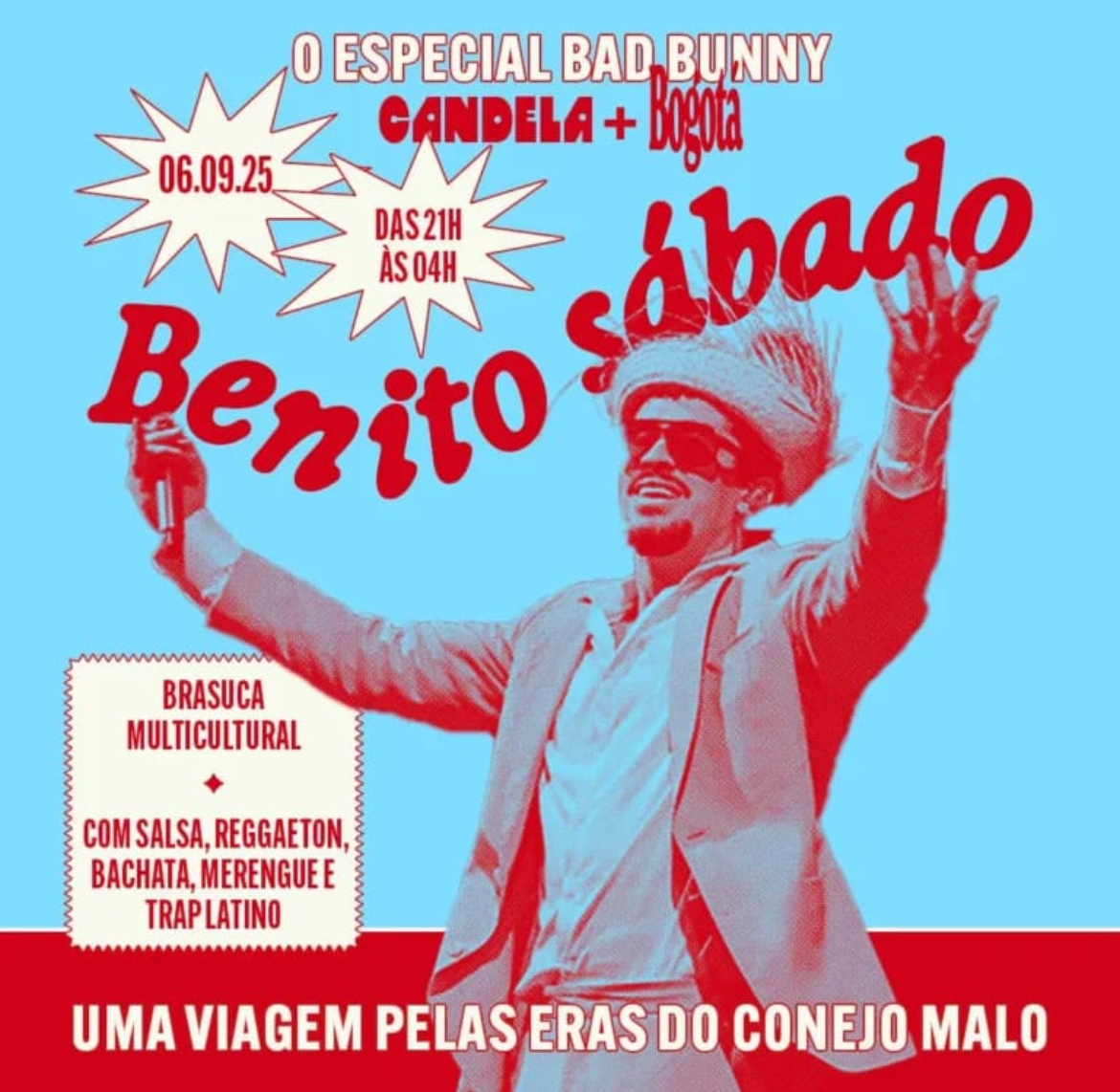 O especial Benito Sábado é organizado pelas festas Candela (Campinas) e Bogotá (São Paulo) e viaja por todas as eras do Bad Bunny, aproveitando para trazer também outros artistas que inspiram e dialogam com a obra dele. A primeira edição do Benito Sábado aconteceu em São Paulo, no Cine Joia, em junho, e agora desembarca em Campinas.