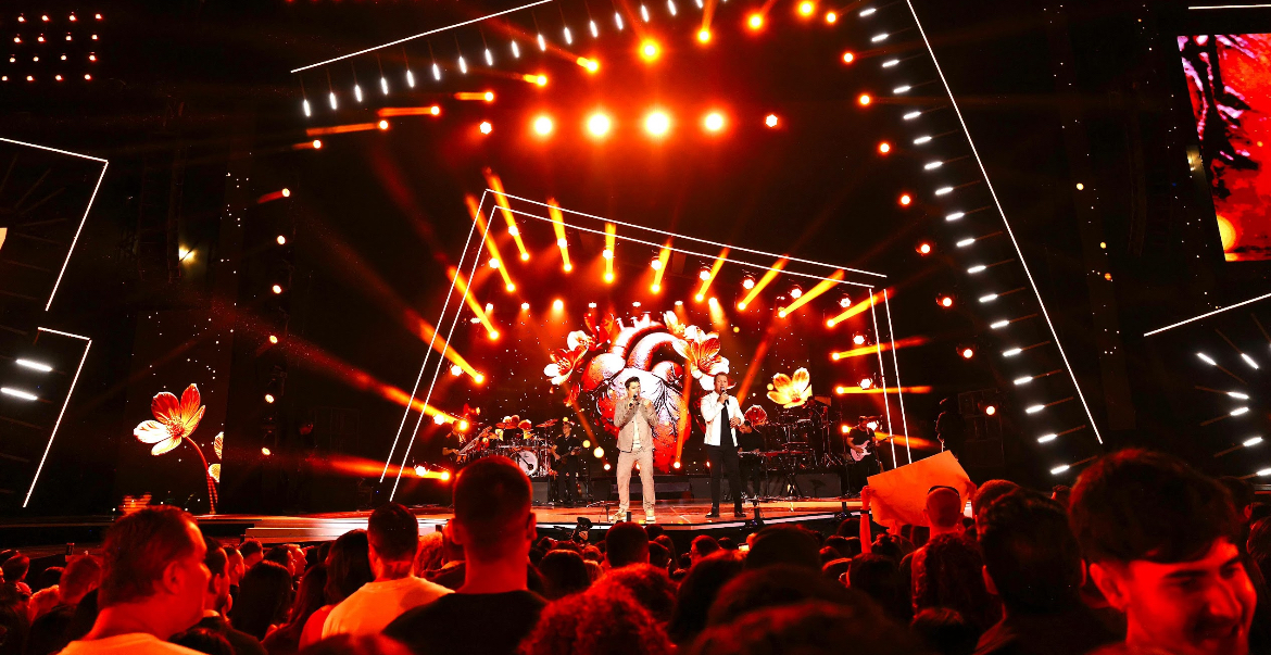 Diante de um público animado, os irmãos entregaram um espetáculo impecável, com superprodução, repertório afiado e participações especiais que fizeram a plateia cantar em coro. Nos feats, Murilo Huff emocionou em “50% Minha”, Hugo & Guilherme incendiaram o estádio com “Tô Sendo Obrigado”, Matheus & Kauan colocaram todo mundo pra cantar “Laia” e Zé Neto e Cristiano, como participação surpresa anunciada apenas algumas horas antes, foram recebidos pela multidão para cantar “Uma galera chora”.