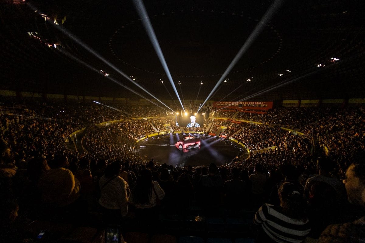 Um evento excepcional! Jão arrastou uma multidão de fãs para o Ginásio do Ibirapuera, em São Paulo, em pleno domingo de Dia dos Pais. Nem o tempo frio desanimou os 12 mil fãs do artista, que formaram filas desde cedo para garantir os melhores lugares na audição de seu novo disco, “SUPER”.