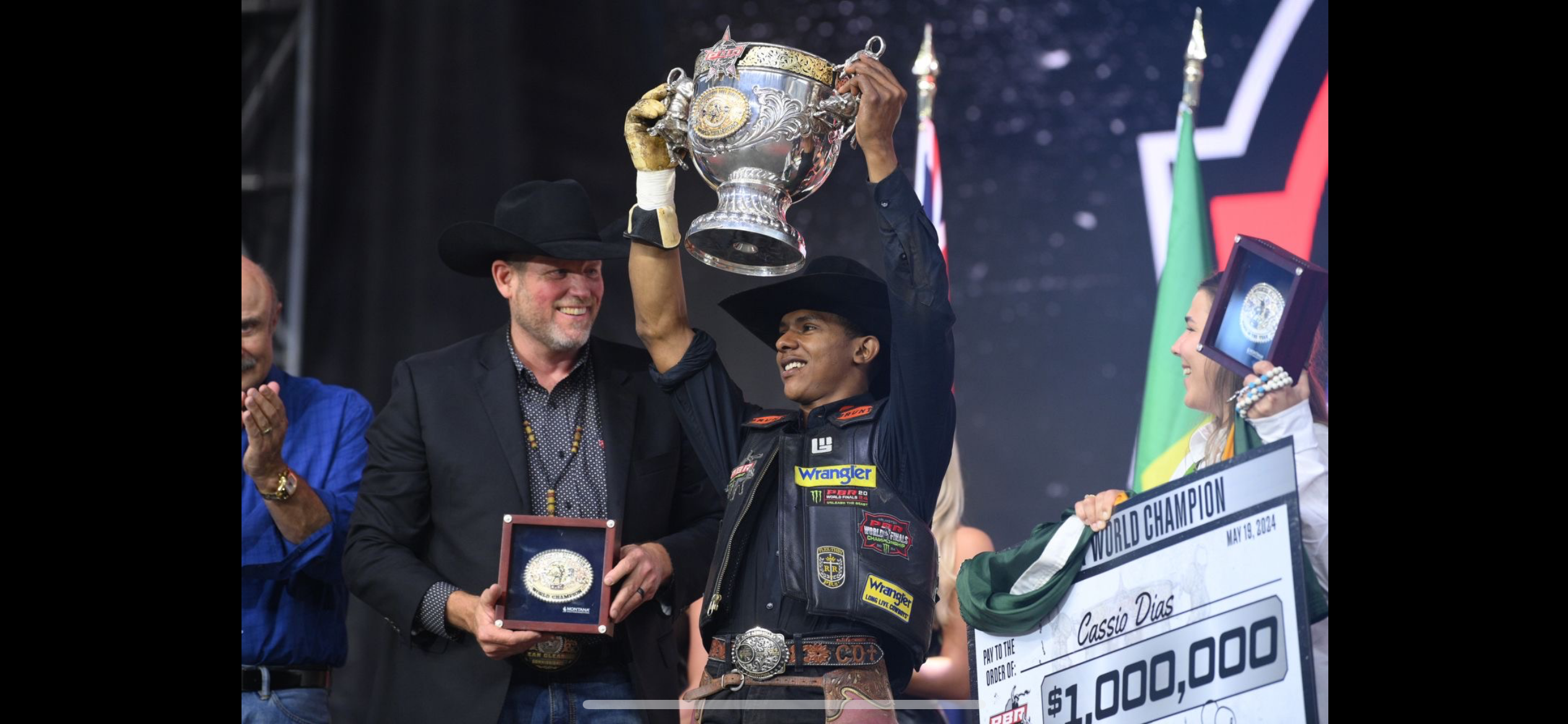 O jovem fenômeno mineiro Cássio Dias Barbosa conquistou no início da noite deste domingo o título mundial de Montaria em Touros da Professional Bull Riders, a maior liga deste esporte no mundo e faturou o bônus de 1 milhão de dólares. Aos 22 anos de idade, o jovem natural de São Francisco de Sales no triângulo mineiro é de origem humilde e chegou a vender sorvetes na infância e juventude para ajudar na renda da família, enquanto alimentava o sonho de se tornar um campeão no esporte que é considerado o mais perigoso do mundo. Em 2022, Cássio Dias Barbosa venceu o campeonato nacional da PBR no Brasil, sendo consagrado na arena da Festa do Peão de Barretos, o que lhe abriu as portas para a elite da PBR nos Estados Unidos.