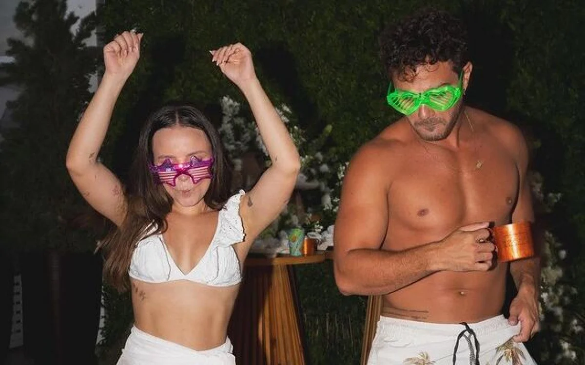 “Mood sabadou”, declarou Larissa na legenda da postagem. Nas fotos, a artista aparece dançando de forma descontraída enquanto faz caras e boas, de top e saia brancos, com um óculos de estrela rosa neon para completar. Já o ator decide mostrar o seu jingado usando um óculos de coração verde e uma bermuda estampada. Os dois se casaram de surpresa em dezembro do ano passado após passarem por um ano conturbado com os pais da influenciadora, que nunca aprovaram o relacionamento.