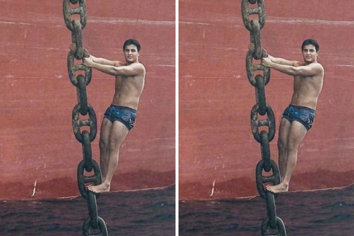 O filho de Ivete Sangalo e Marcelo Cady foi clicado pendurado na corrente da âncora de um navio, em alto-mar.