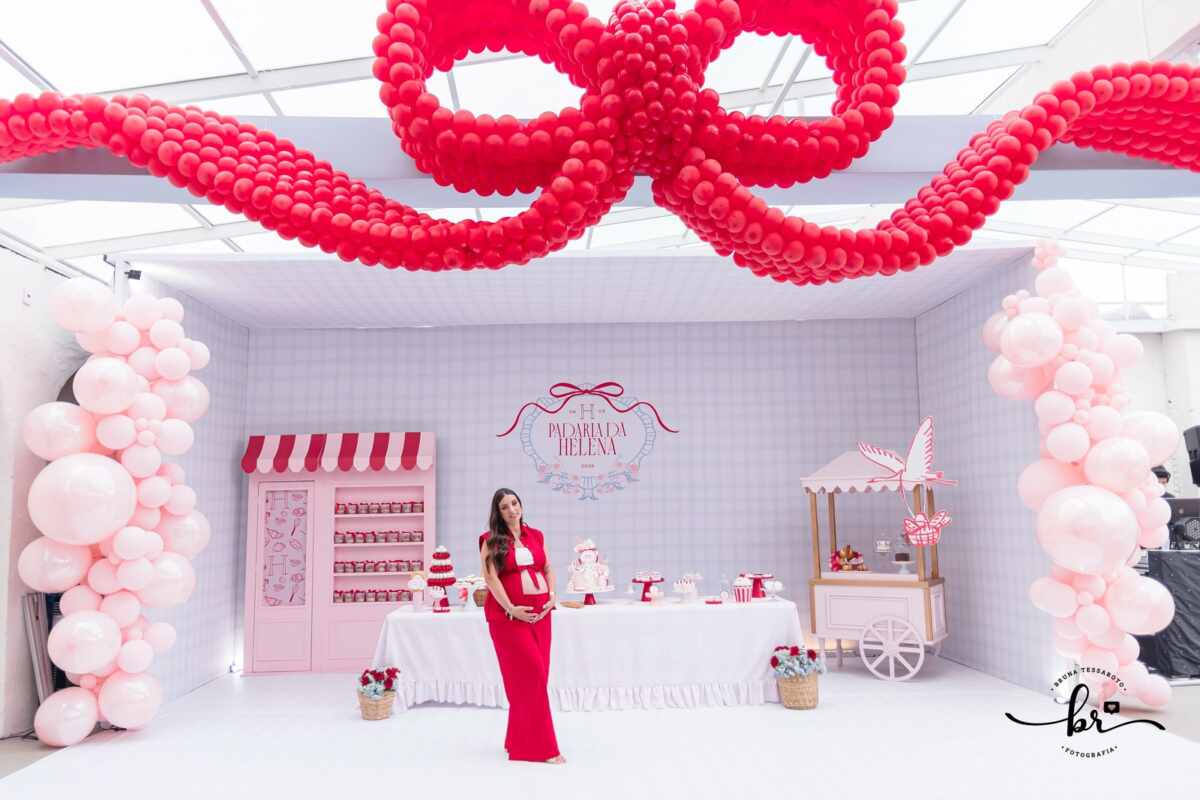 Mariana Vazquez é influencer, assessora de festas infantis e CEO da empresa @simplesassim e muito antenada nas tendência, trouxe para o chá de bebê de sua filha uma mistura dos 3 estilos que mais vão bombar em 2025, trazendo a padaria que é algo cotidiano para um tema de festa, com muitas estampas, elementos vintages, cores mais delicadas e inusitadas.