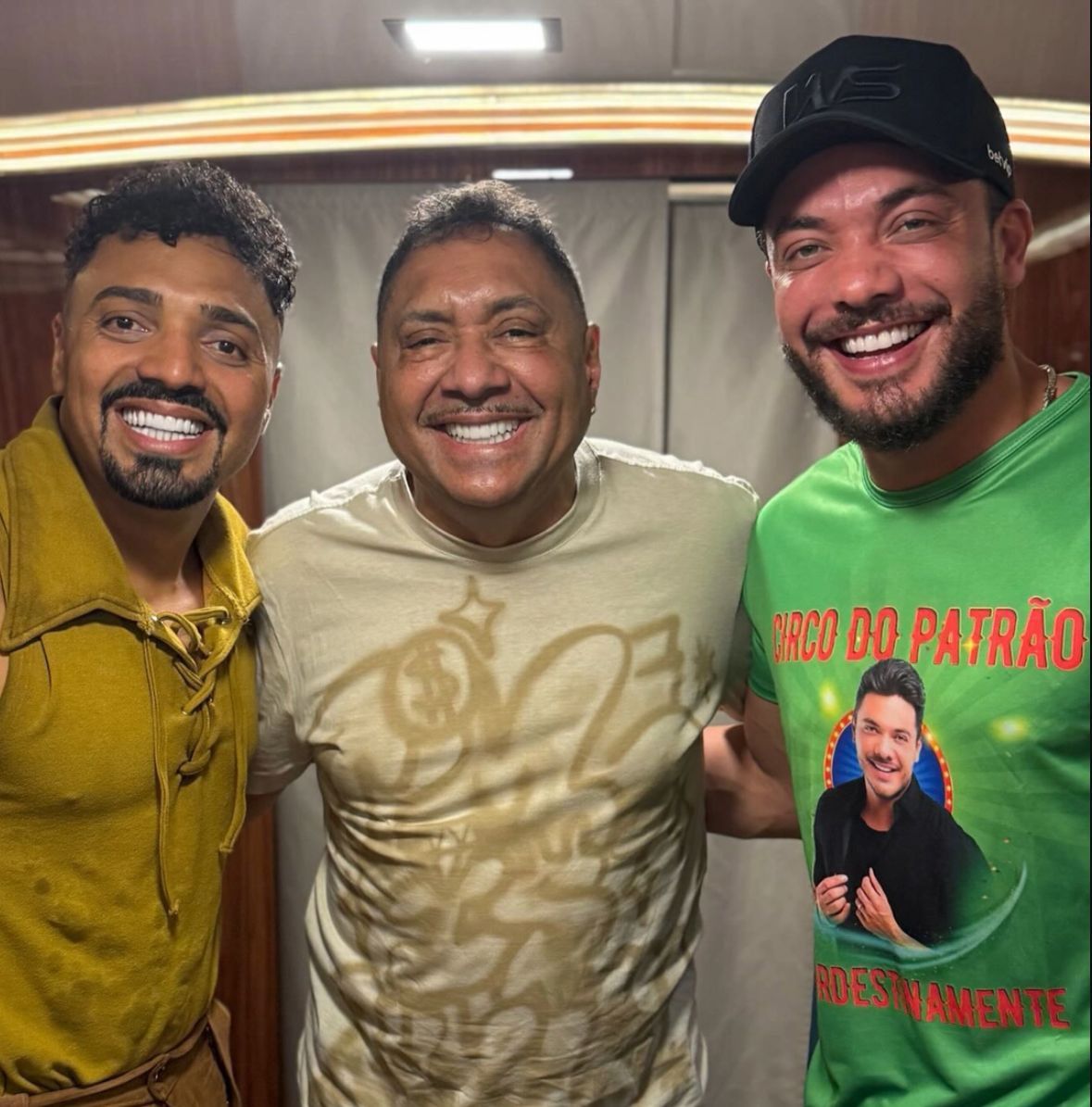Já nos bastidores, Tirullipa foi surpreendido ao ver a equipe vestida com camisetas estampadas com a frase “Circo do Patrão” e a foto de Wesley Safadão, uma brincadeira que já virou tradição entre os dois.