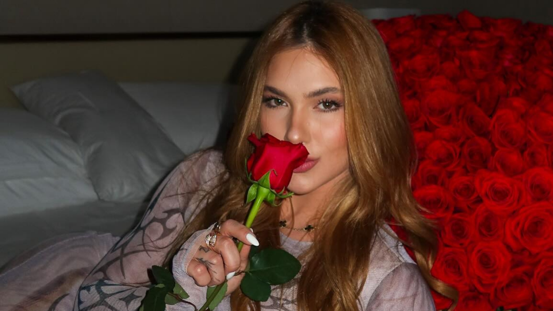 Em duas fotos publicadas no feed do Instagram, Virginia aparece deitada na cama ao lado de um imenso buquê de rosas vermelhas. Usando um vestido longo e justo, a ex-esposa do cantor Zé Felipe escreveu apenas: “Um dia especial pra você…”, sem revelar quem teria enviado o mimo.