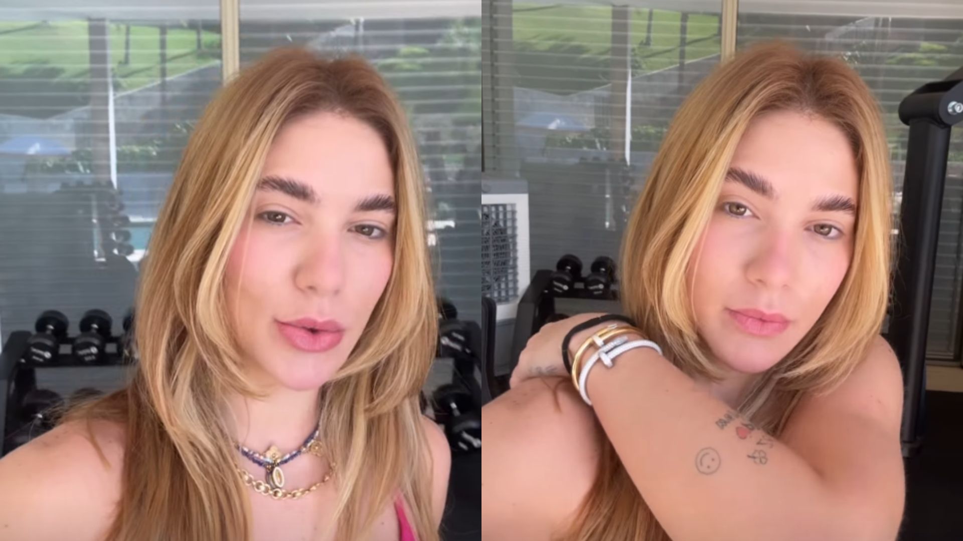 “Bom dia, bom dia! Já estou de pé, fiquei enrolando na cama, aí levantei e falei assim: ‘Ah, vou levantar, vê se eu faço um treino’”, contou a influenciadora. Ela ainda explicou que a movimentação em casa estava tranquila: “As crianças estão lá na casa da Poli e do Leo, vão almoçar lá com o Zé, que chegou hoje. Minha mãe tá dormindo. Rafa e Lucas dormindo. Todo mundo dormindo. Então, vamos fazer um treininho aqui.”