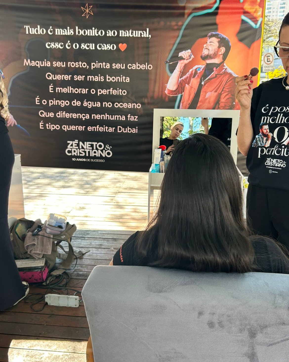 “Maquia seu rosto, pinta seu cabelo, querer ser mais bonita, é melhorar o perfeito”, o refrão de “Dubai”, novo single de Zé Neto & Cristiano, enaltece a beleza feminina, e para melhorar o dia de dezenas de fãs, a dupla junto com a gravadora Som Livre, presenteou de surpresa a realização de maquiagens profissionais na região da Lapa, zona oeste de São Paulo.